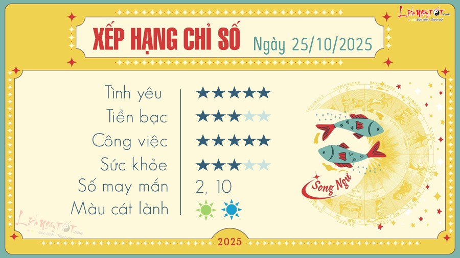 Mời các bạn đón đọc Tử vi ngày 26/10/2025 của 12 cung hoàng đạo trên Lịch ngày tốt vào hồi 17h và fanpage Mật ngữ 12 chòm sao vào hồi 20h hàng ngày nhé.